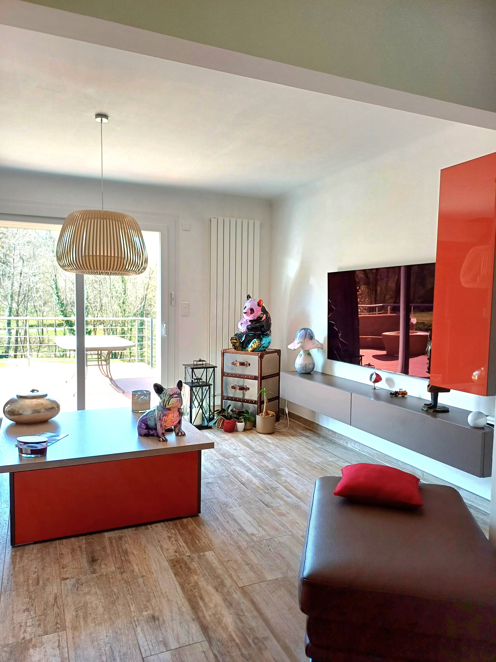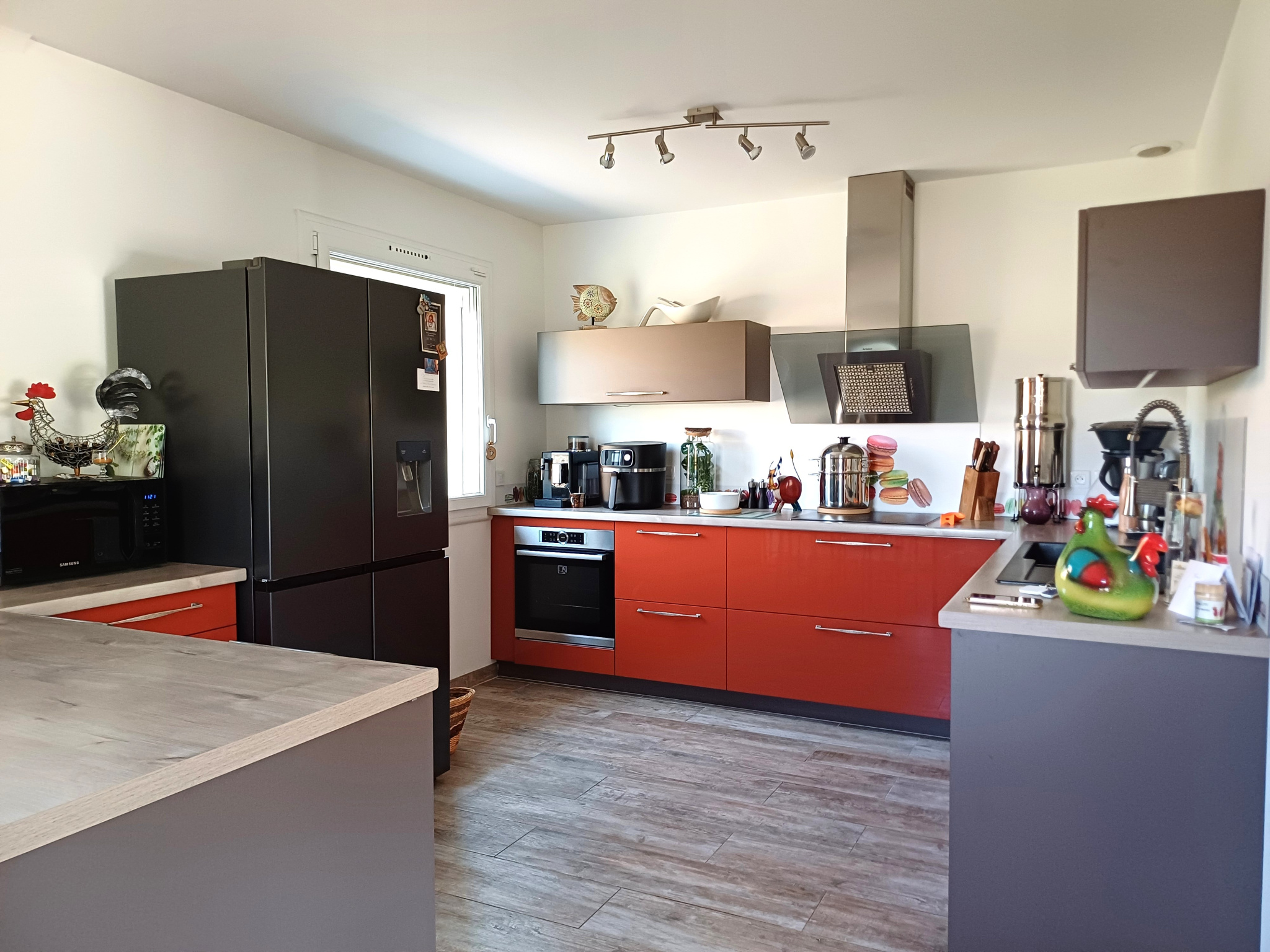 Cuisine semi ouverte sur salon/séjour, accès à une agréable terrasse de + de 20m², deux chambres dont une avec salle d'eau, dressing (8.6m²), salle d'eau, wc,